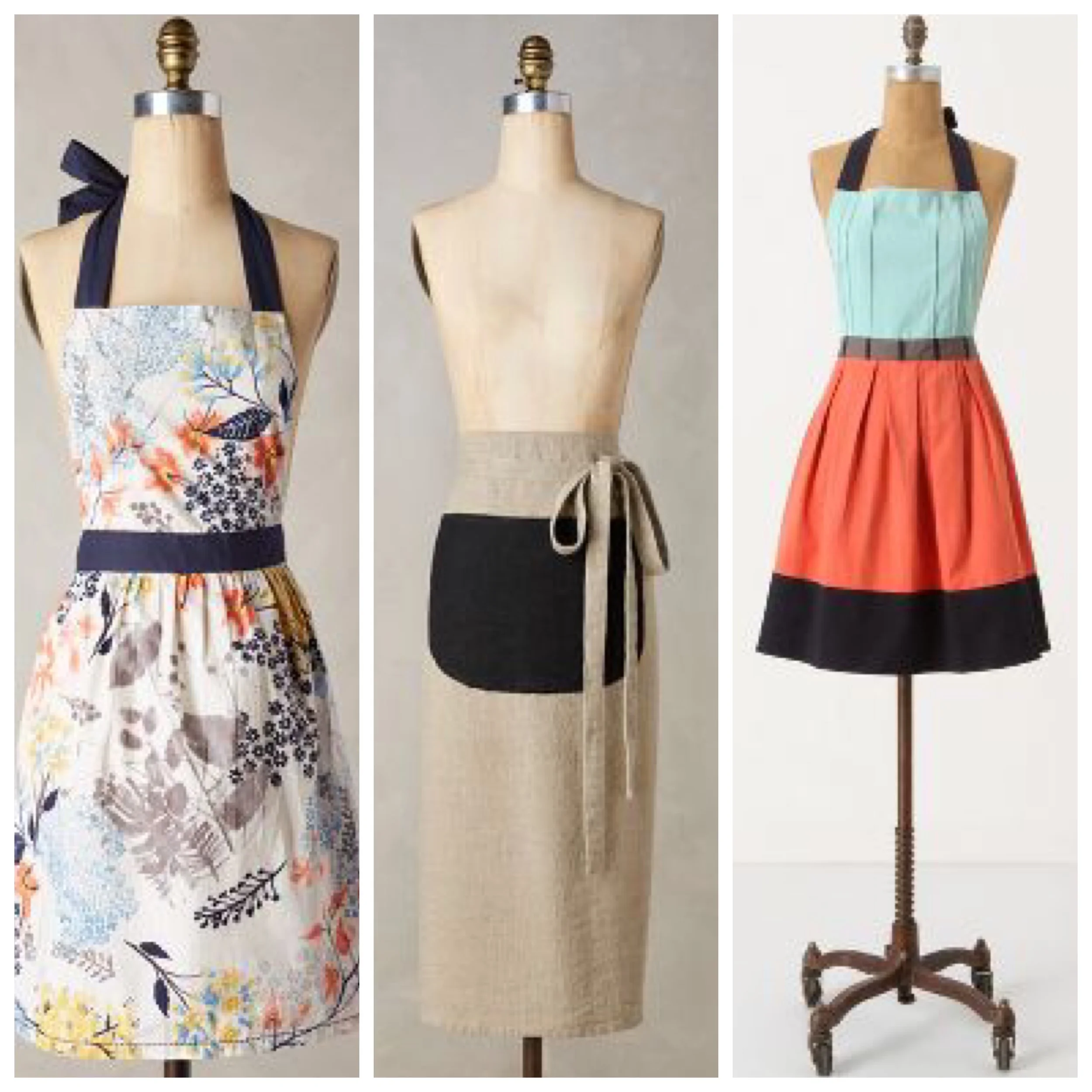 And these pretty ones from Anthropologie, from left to right: Botonaist Knoll Apron ($28), Anbauer Half Apron ($38), and Cuisine Couture Apron ($32).